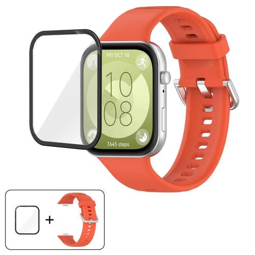 Correa de silicona con hebilla de acero plateada y película curva 3D para Huawei Watch Fit 3 (naranja)