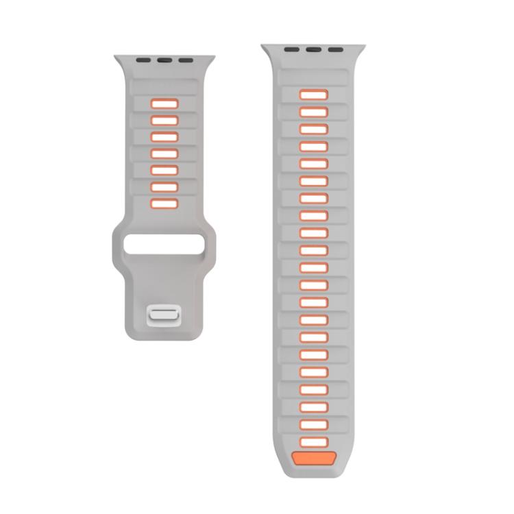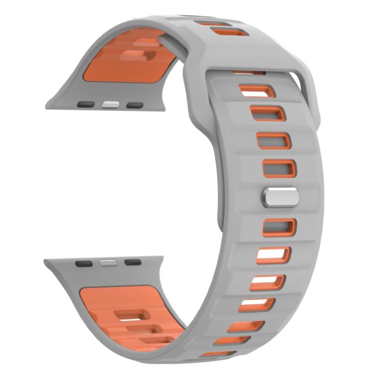 Correa de silicona con hebilla invertida a cuadros para Apple Watch de 46 mm, 49 mm, 45 mm y 44 mm (gris y naranja)