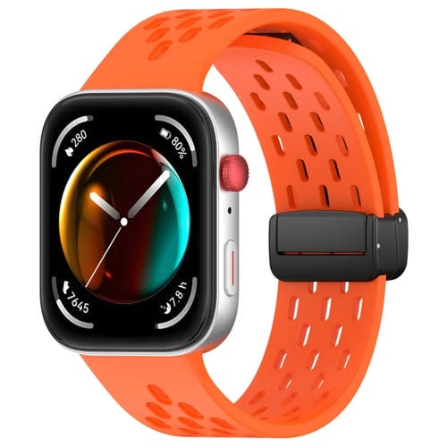 Correa de Silicona con Hebilla Magnética Plegable para Huawei Watch Fit3 (Naranja)