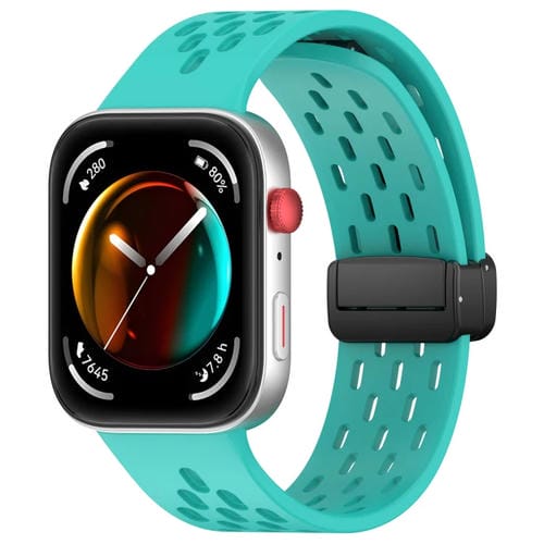 Correa de Silicona con Hebilla Magnética Plegable para Huawei Watch Fit3 (Verde Azulado)