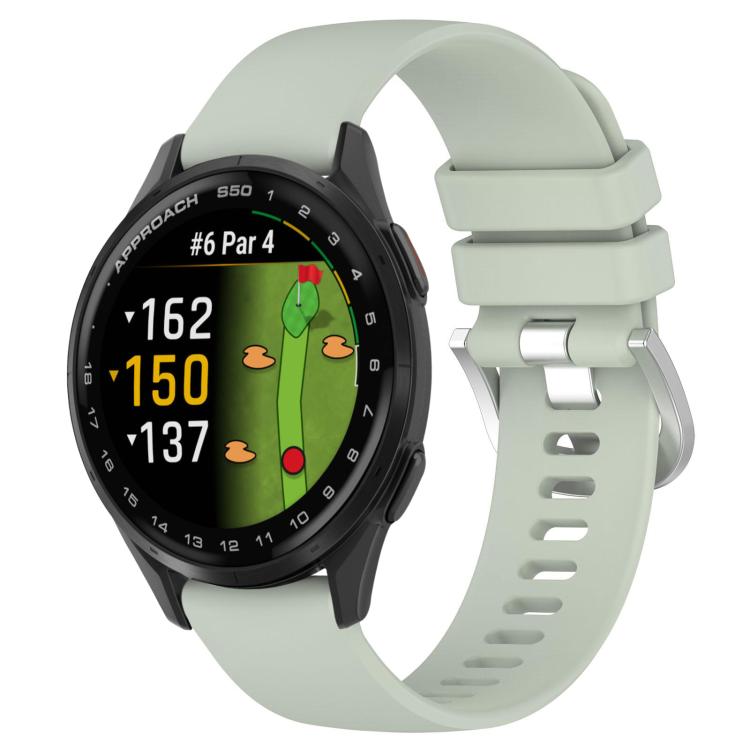 Correa de silicona con hebilla plateada brillante líquida para Garmin Approach S50 de 20 mm (verde)