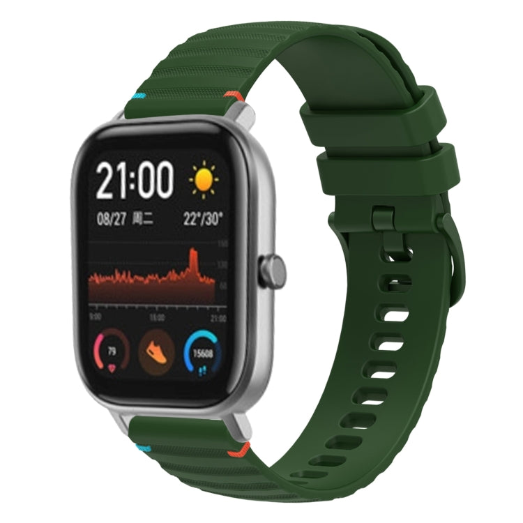 Correa de Silicona para Reloj Amazfit GTS 20mm con Puntadas Onduladas y Puntos (Verde Militar)