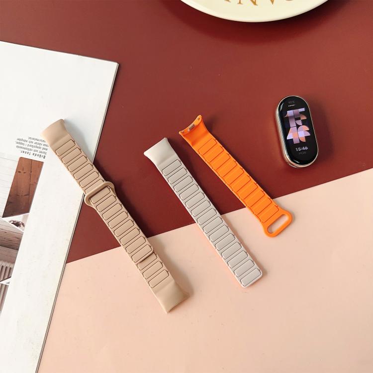 Correa de silicona magnética de tres cuentas para Xiaomi Smart Band 10/9/8 (gris y naranja)