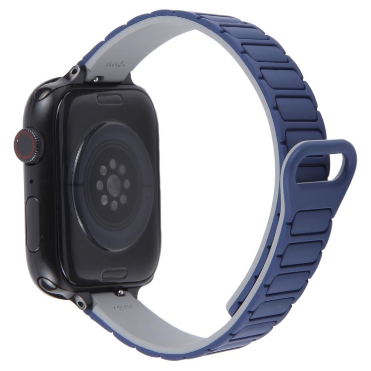 Correa de silicona magnética delgada en forma de I para Apple Watch de 46 mm, 49 mm, 45 mm y 44 mm (negro y gris azulado oscuro)