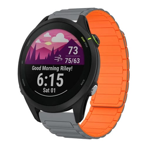 Correa de Silicona Magnética En Forma de I para Reloj Garmin Forerunner 255 Music de 22mm (Gris y Naranja)