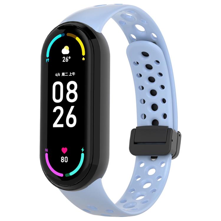 Correa de silicona magnética negra con hebilla para Xiaomi Smart Band de 10/9/8 agujeros (azul claro)
