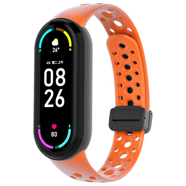 Correa de silicona magnética negra con hebilla para Xiaomi Smart Band de 10/9/8 agujeros (naranja)