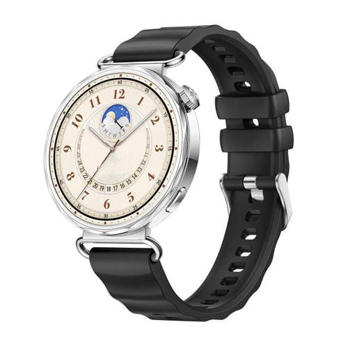 Correa de silicona para Huawei Watch GT 6 de 41 mm con hebilla plateada y resorte de liberación rápida (negro)