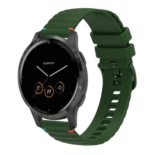 Correa de Silicona Garmin Vivoactive 4 22mm Puntadas Onduladas Puntos (Verde Militar)