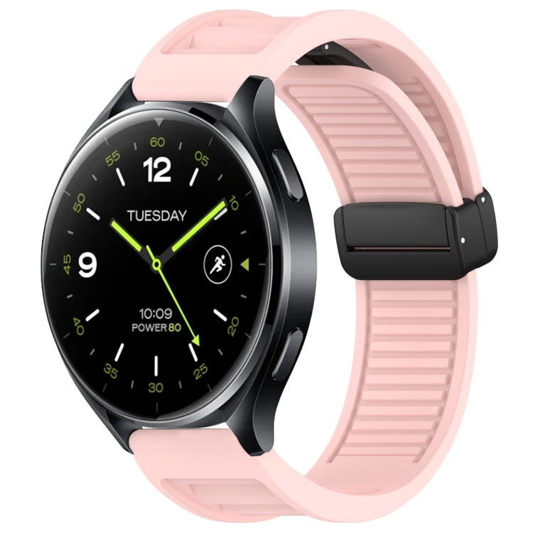 Correa de silicona para reloj Xiaomi Watch 2 con hebilla magnética y ventana ciega de 22 mm (rosa)