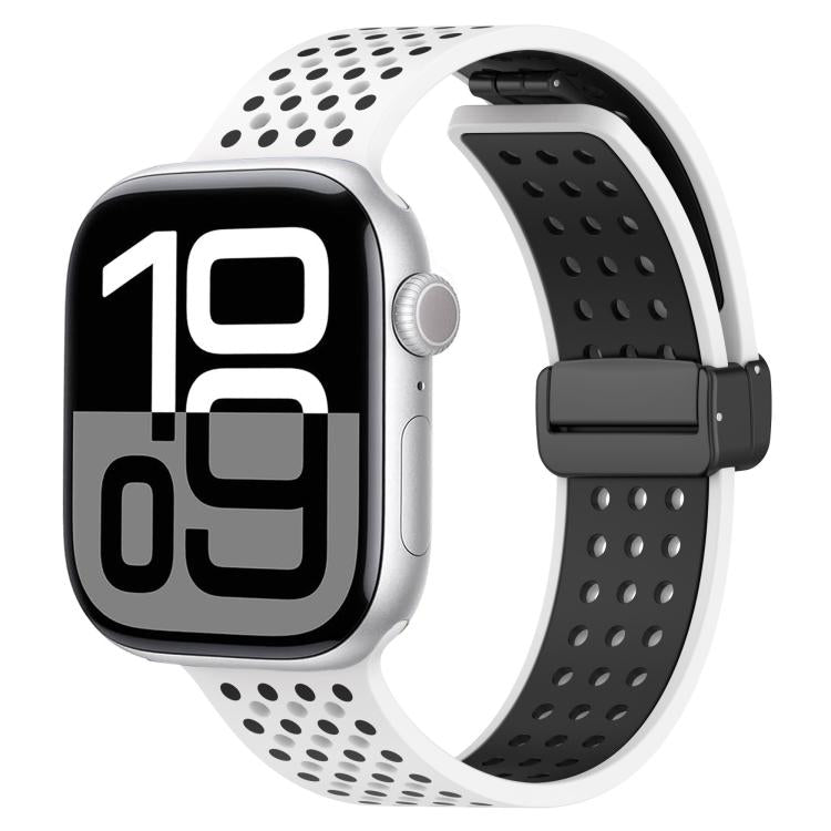 Correa de silicona transpirable con hebilla magnética para Apple Watch de 42 mm, 41 mm, 40 mm y 38 mm (blanco y negro)