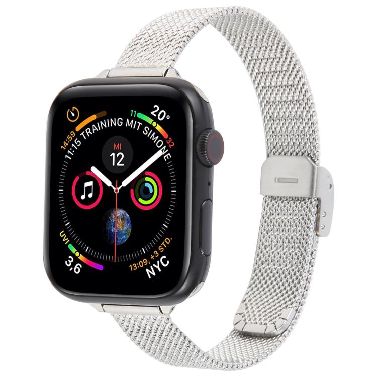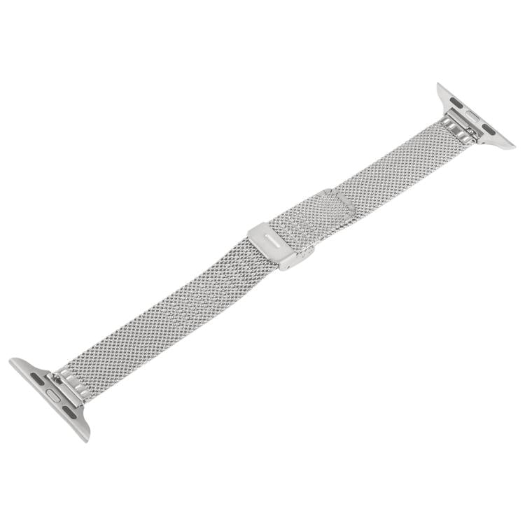 Correa fina de metal milanés con hebilla integrada en relieve para Apple Watch de 42 mm, 41 mm, 40 mm y 38 mm (plateada)