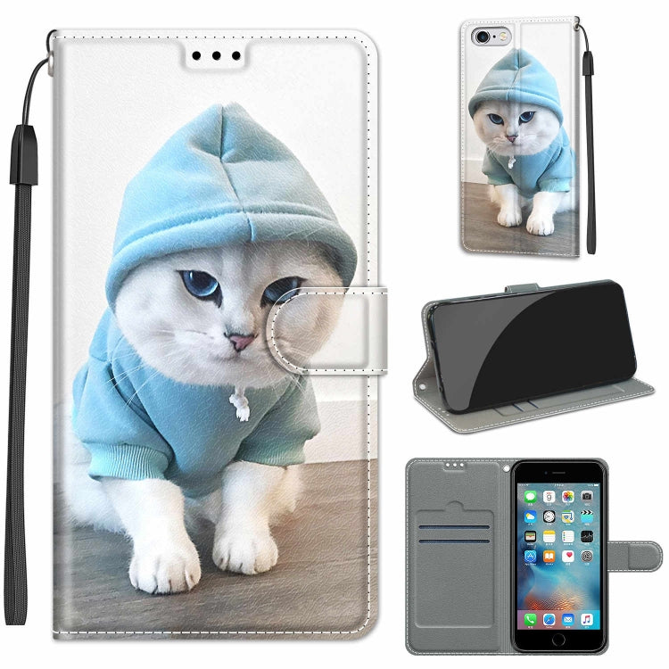 Funda de cuero PU para iPhone 6S / 6 Voltaje con cierre magnético, soporte y ranuras para tarjeta (C15 Suéter Azul Blanco Gato)
