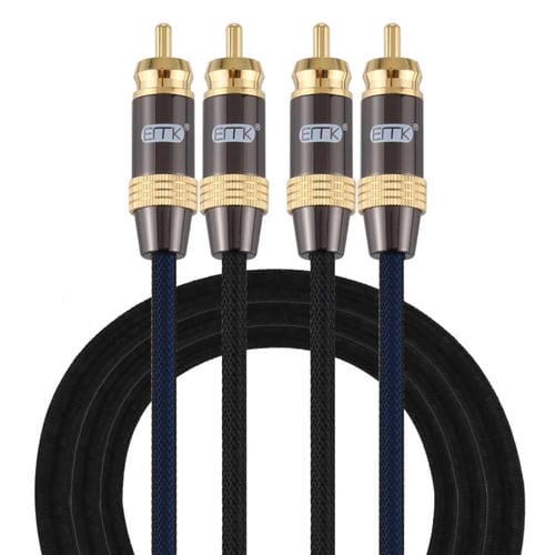 Cable de Audio Coaxial Emk 2 RCA Macho a 2 RCA Macho Chapado en Oro Nylon Trenzado 1,5 m (Negro)