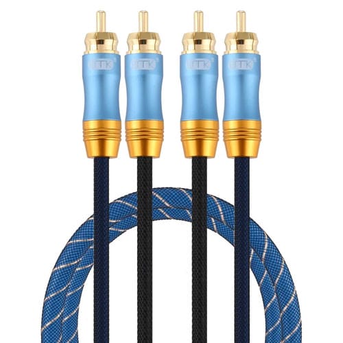 - 1x Cable de Audio Coaxial EMK 2 x RCA Macho a 2 x RCA Macho chapado en oro trenzado de nailon 1 m (Azul Oscuro)