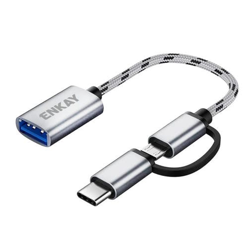 Cable Adaptador Enkay Enk-At113 2 en 1 Tipo C y Micro USB a USB 3.0 (Plata)