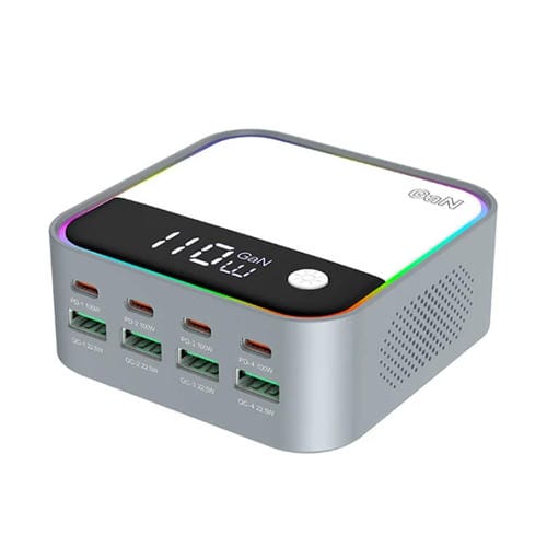 Estación de carga de escritorio multipuerto Wlx-M8 pantalla digital inteligente 120 W (Gris y Blanco)