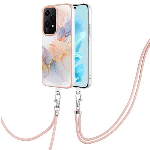 Estuche TPU para Honor 200 Lite con Patrón Galvanoplastia y Cordón para Cuello (Mármol Blanco)
