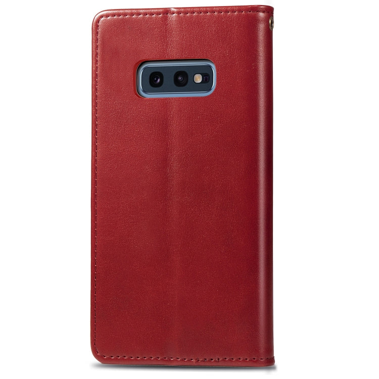 Estuche de Cuero Galaxy S10E Protección con Hebilla Ranura Tarjeta Billetera Soporte (Rojo)