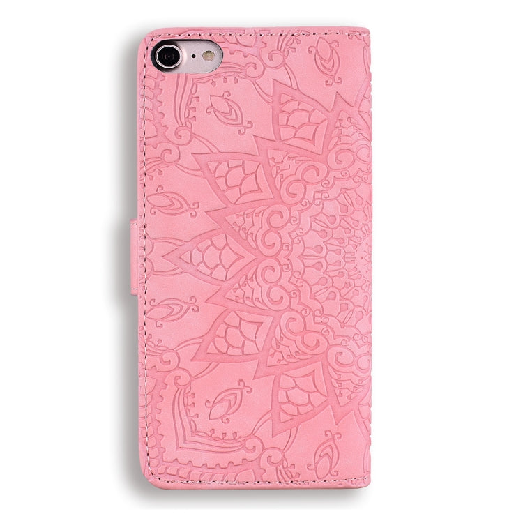 Estuche de Cuero Repujado Plegable Doble Becerro con Billetera para iPhone SE 2020 8 7 (Rosa)