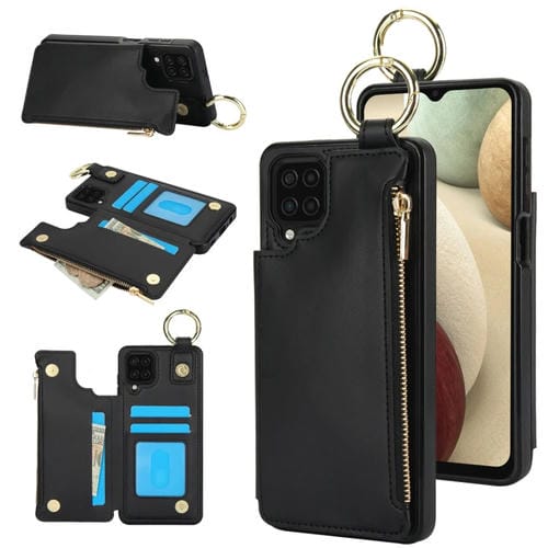 Estuche para Teléfono Samsung Galaxy A12 Rfld con Cremallera y Anillo Doble Hebilla Antirrobo (Negro)