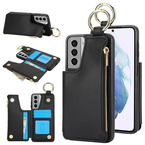 Estuche para Teléfono Samsung Galaxy S21+ 5G Rfld con Cremallera y Anillo de Doble Hebilla Antirrobo (Negro)