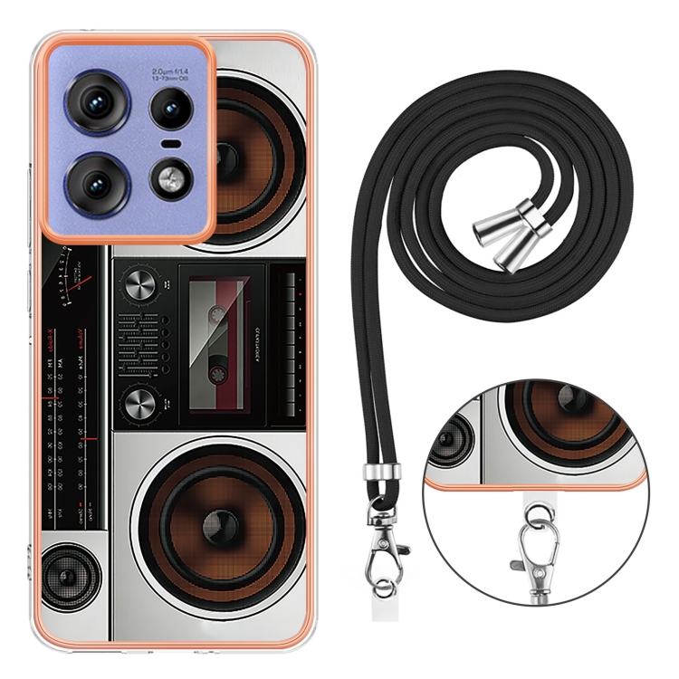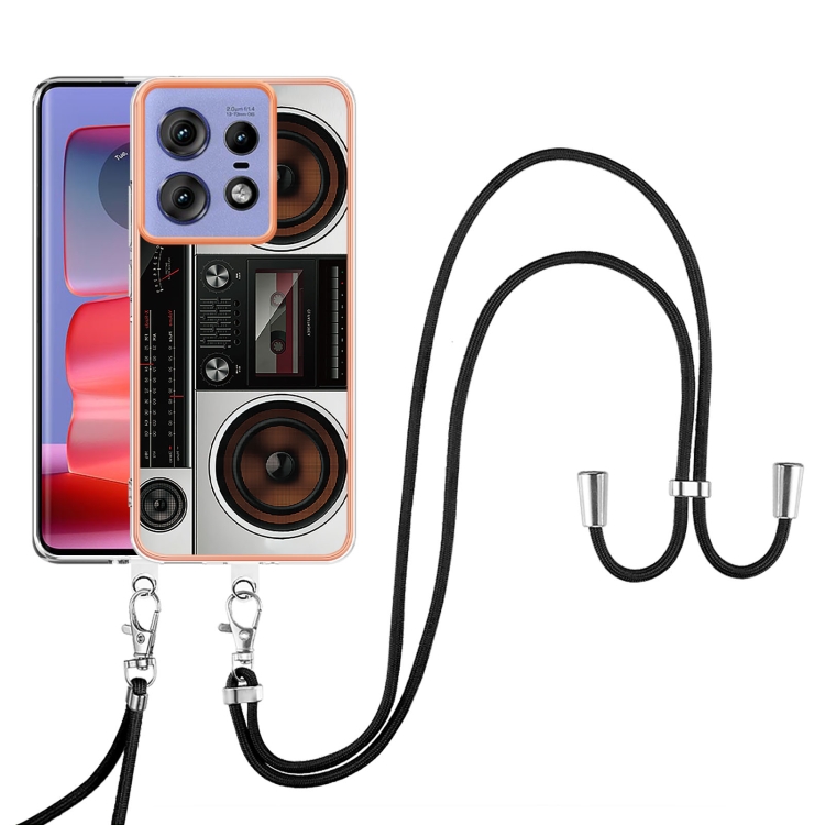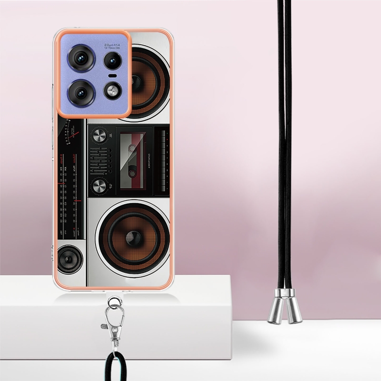 Estuche para Teléfono Motorola Edge 50 Pro con IMD Doble Cara Galvanizada y Cordón (Radio Retro)