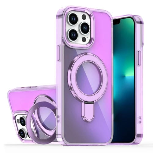 Estuche para Teléfono iPhone 13 Pro Soporte Magsafe Revestimiento Degradado (Morado Transparente)