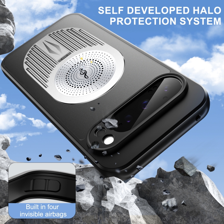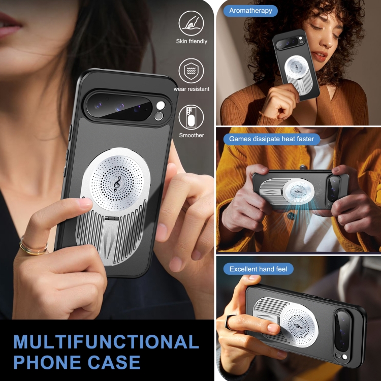 Estuche para teléfono Google Pixel 9 Pro XL con soporte aromaterapia y disipación de calor (Plateado)