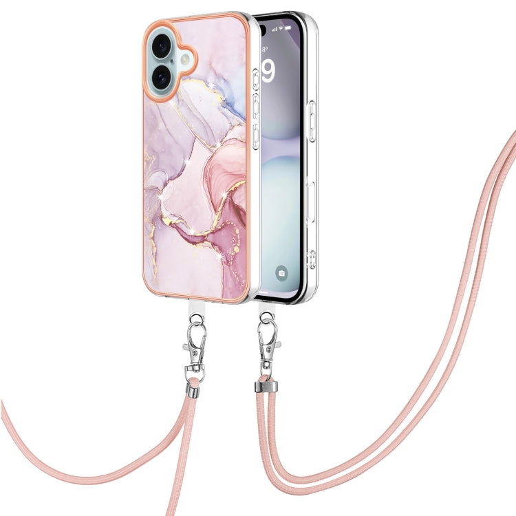 Estuche para Teléfono IMD Doble Cara Revestimiento Mármol Galvanizado iPhone 16 con Cordón (Oro Rosa)