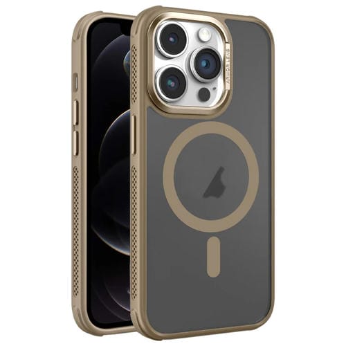 Estuche para teléfono Magsafe iPhone 12 Pro con marco de Lente metal esmerilado y enfriamiento lateral (Dorado)