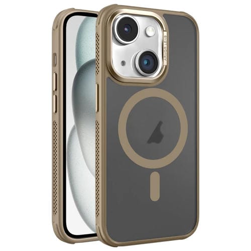 Estuche para Teléfono Magsafe iPhone 15 Plus Marco Metal Esmerilado Piel Enfriamiento (Dorado)