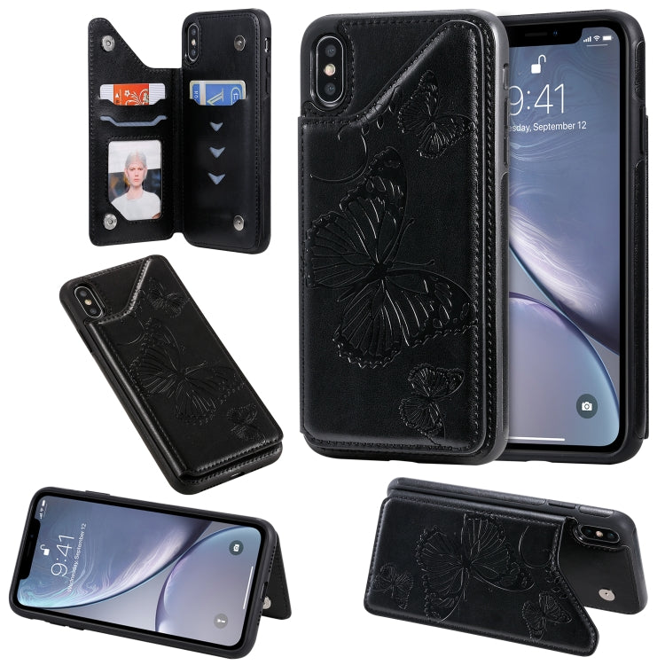 Estuche Protector iPhone Xs Max Patrón Mariposa Soporte Ranuras Tarjetas (Negro)