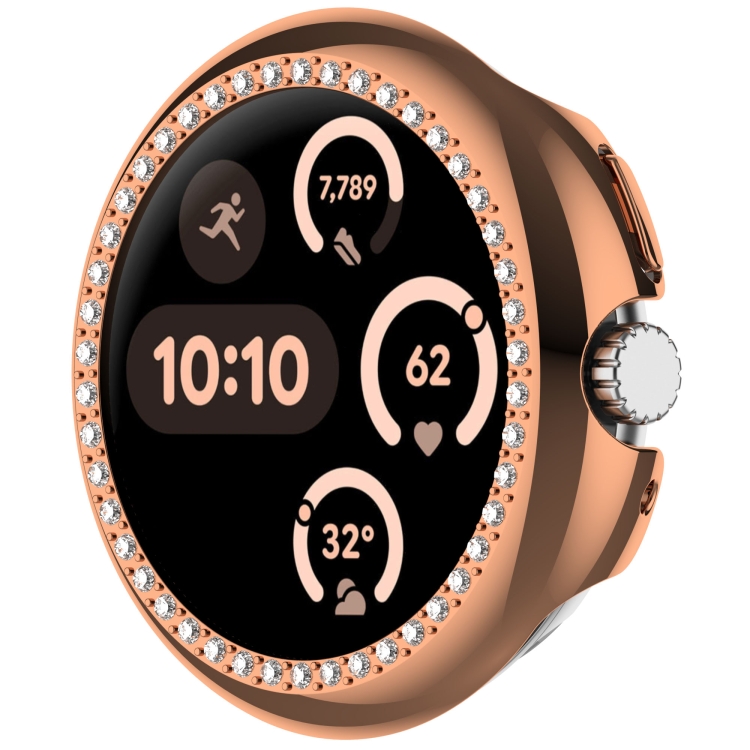 Estuche protector de PC con revestimiento de diamante y cobertura media para Google Pixel Watch 3 de 45 mm (oro rosa)
