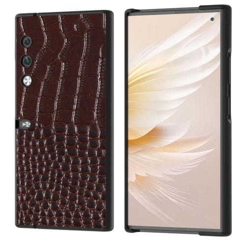 Funda Monedero For Honor V con Borde Negro y Patrón Cocodrilo de Cuero Genuino (Café)
