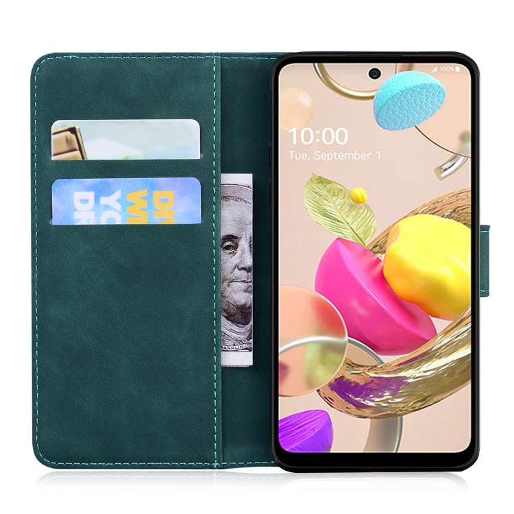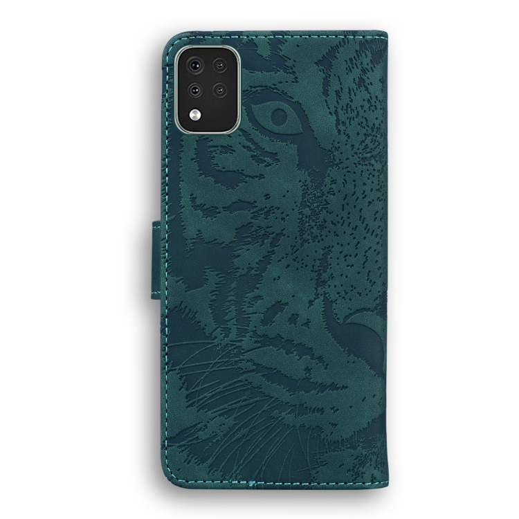 Funda de cuero con patrón Tiger para LG K42, tapa horizontal, tarjetero y billetera (Verde)