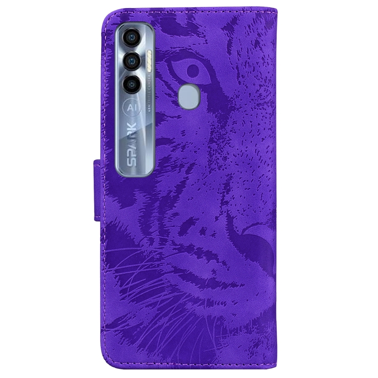 Funda para Tecno Spark 7 Pro con patrón Tiger embossing y tapa horizontal de cuero (Morado)