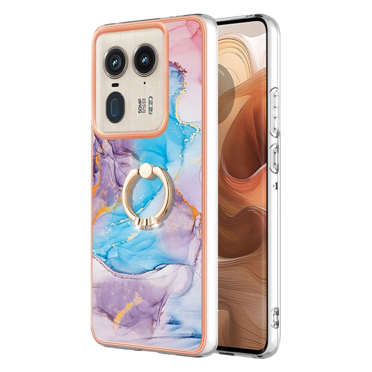 Funda TPU con Patrón Galvanoplastia Imd para Motorola Edge 50 Ultra con Soporte Anillo (Mármol Azul)
