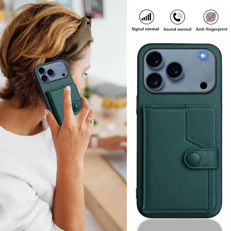 Funda antirrobo RFID con botón y tarjetero para iPhone 17 Pro Max (verde)