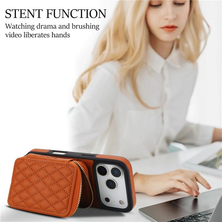 Funda AwQuer con cierre cruzado y parte trasera de cuero romboidal para iPhone 17 Pro (marrón)