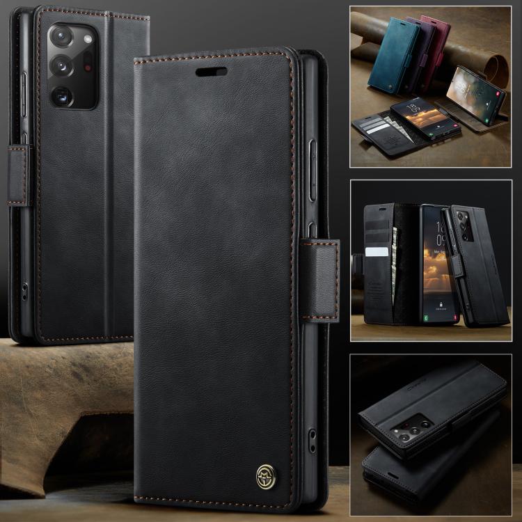 Funda CaseMe 033 para Samsung Galaxy Note20 Ultra, forro de piel de becerro, microfibra y bloqueo RFID (negra)