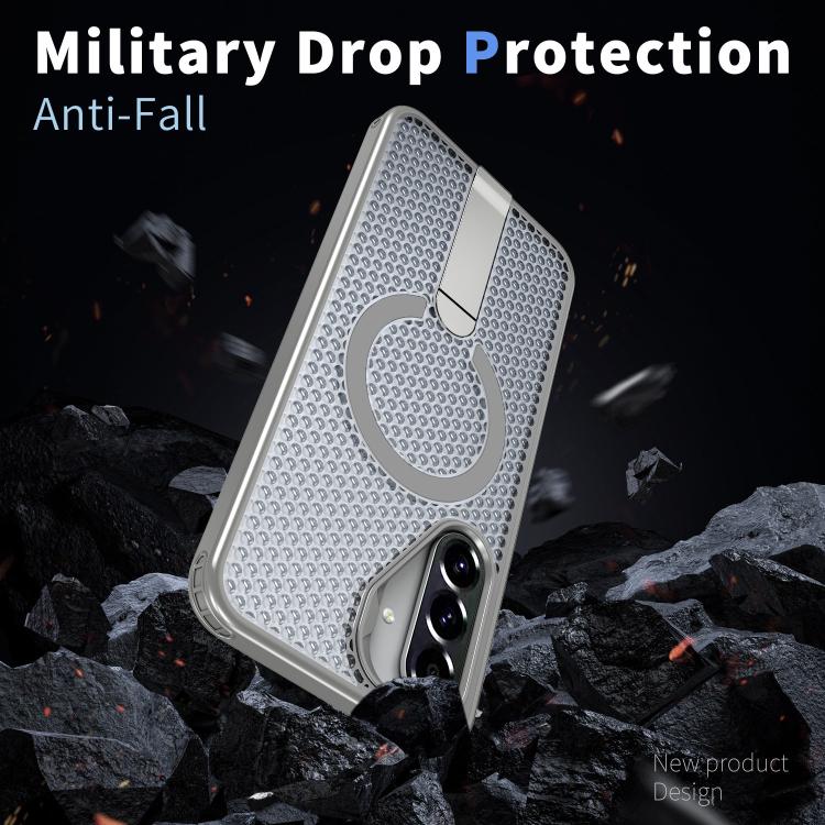 Funda con soporte MagSafe y refrigeración Honeycomb para Samsung Galaxy A26 5G (gris titanio)