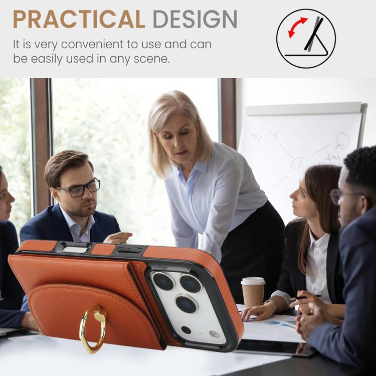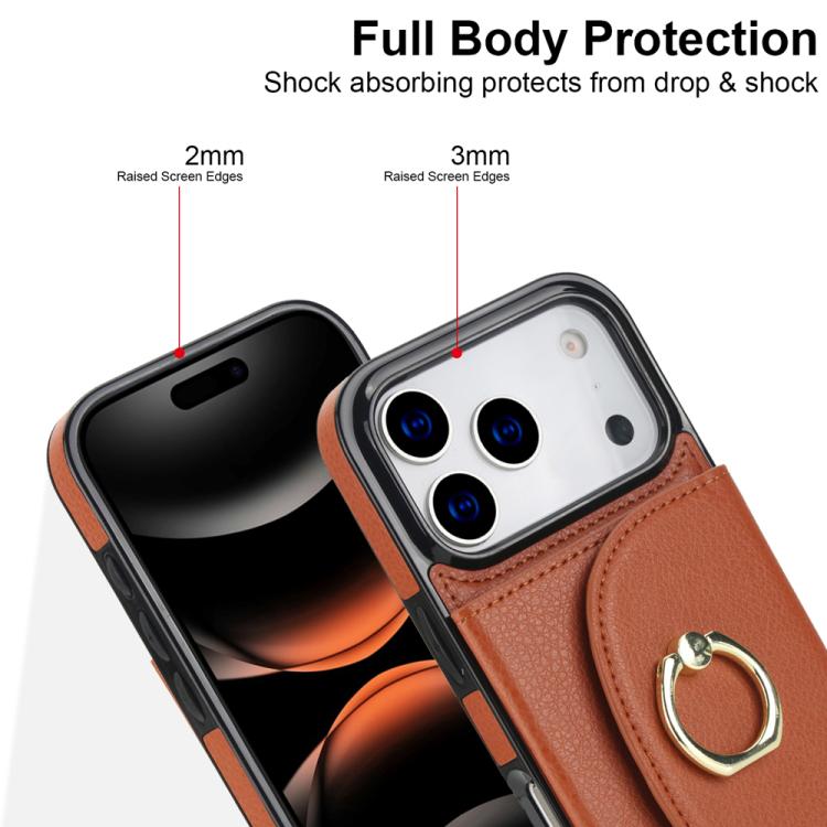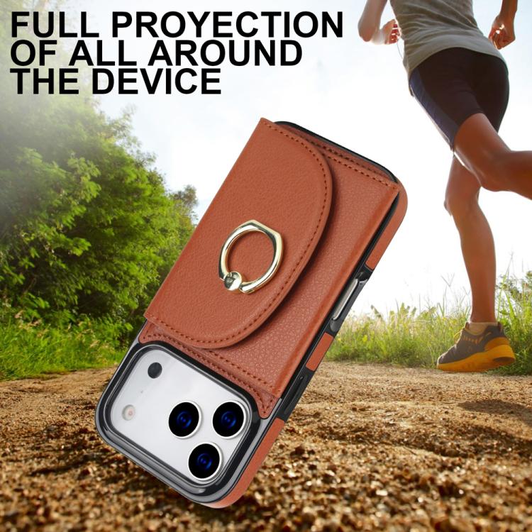 Funda con tarjetero y anillo para iPhone 17 Pro, con tacto de piel (marrón)