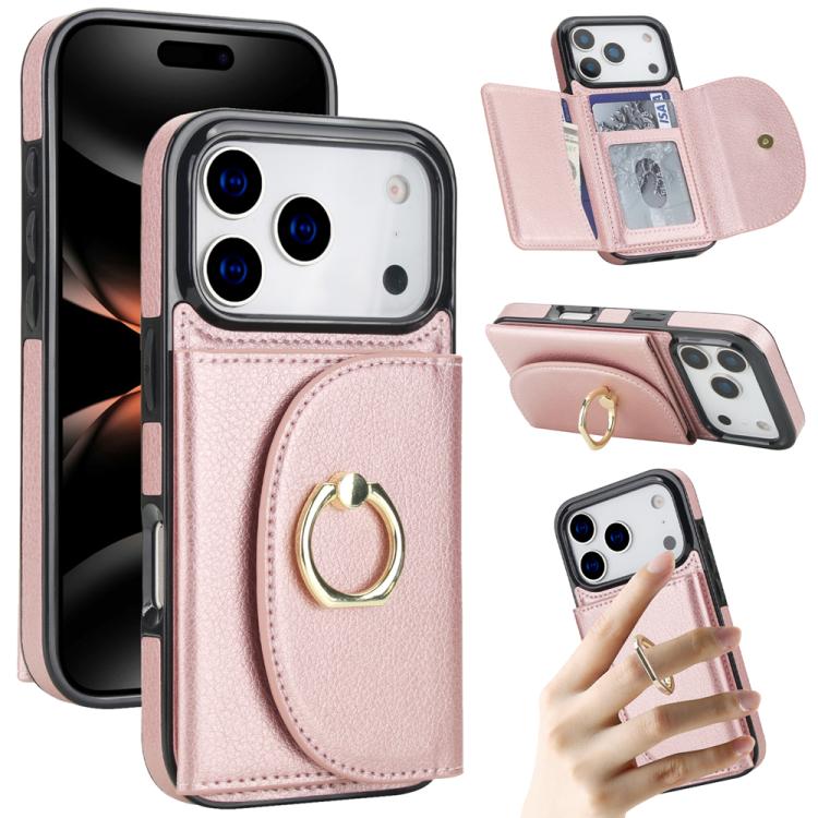 Funda con tarjetero y anillo para iPhone 17 Pro Max, con tacto de piel (oro rosa)