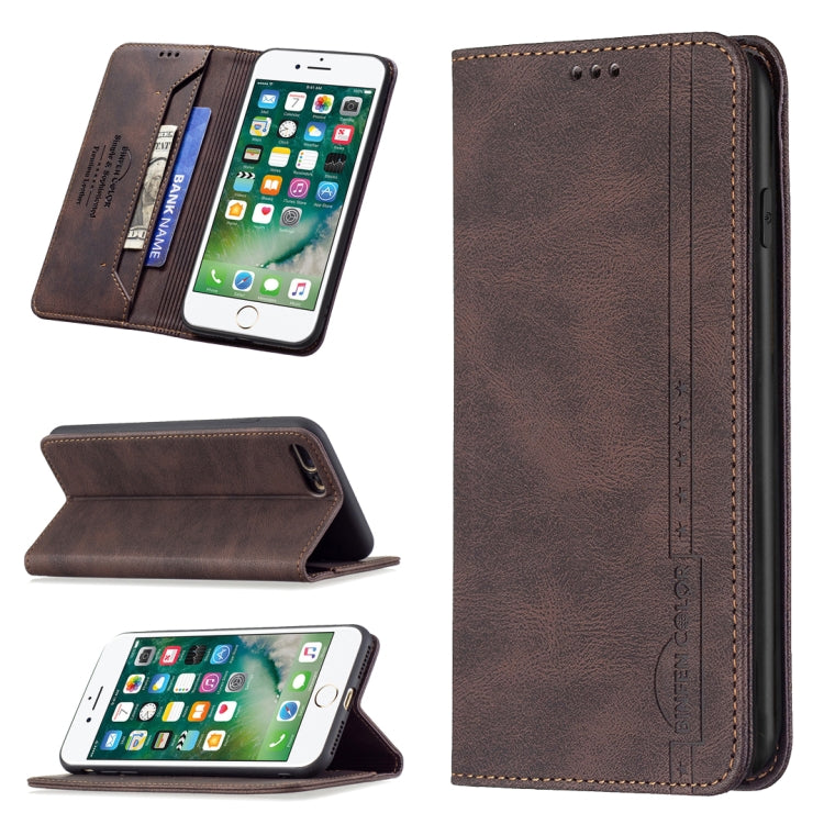 Funda de Cuero Antirrobo Bloqueo Rfid Magnético con Soporte y Ranuras para Tarjetas y Billetera para iPhone 7 Plus / 8 Plus (Brown)