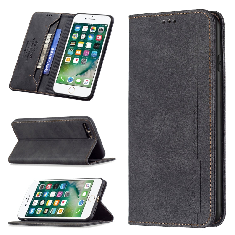 Funda de Cuero Antirrobo Bloqueo Rfid Magnético con Soporte y Billetera para iPhone 7 Plus / 8 Plus (Negro)