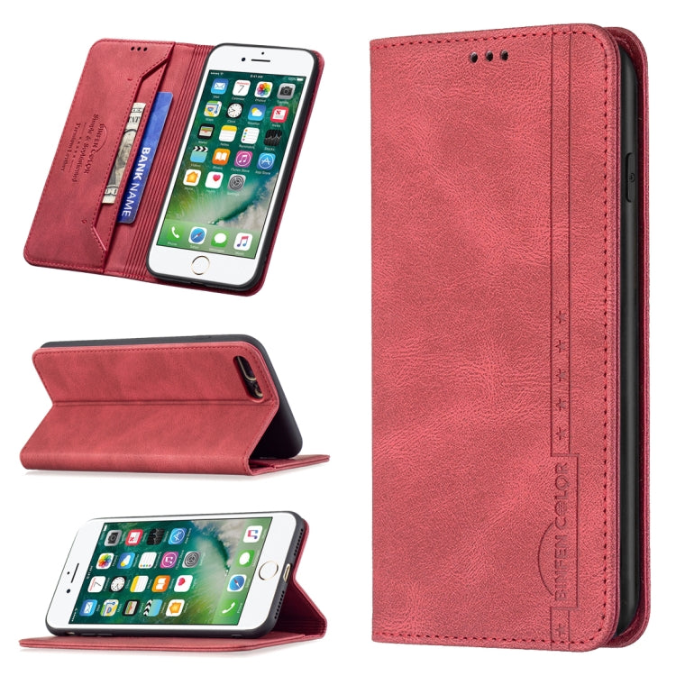 Funda de Cuero Antirrobo Bloqueo Rfid Magnético con Soporte Tragamonedas Billetera para iPhone 7 Plus / 8 Plus (Rojo)