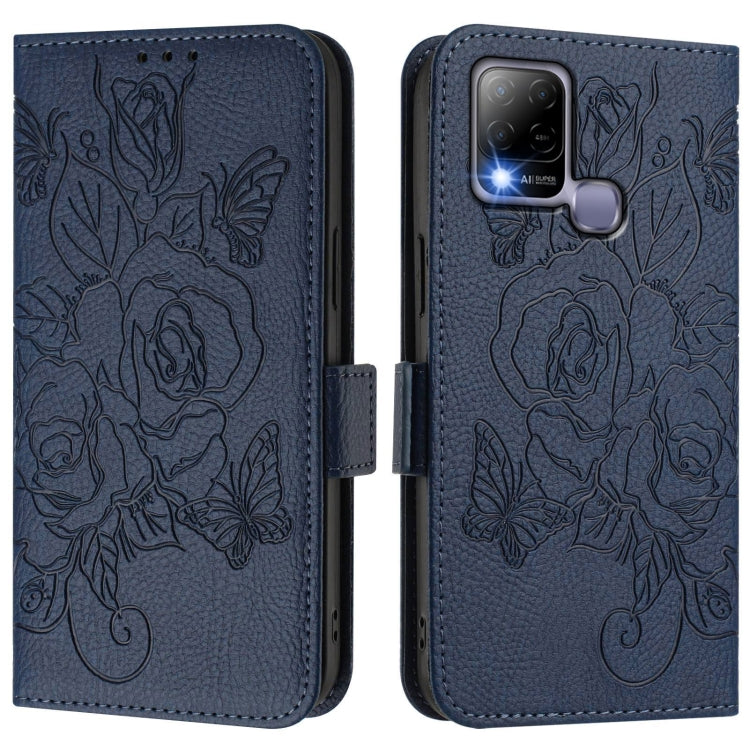Funda de Cuero Antirrobo Rfid con Relieve para Infinix Hot 10T y Hot 10S (Azul Oscuro)