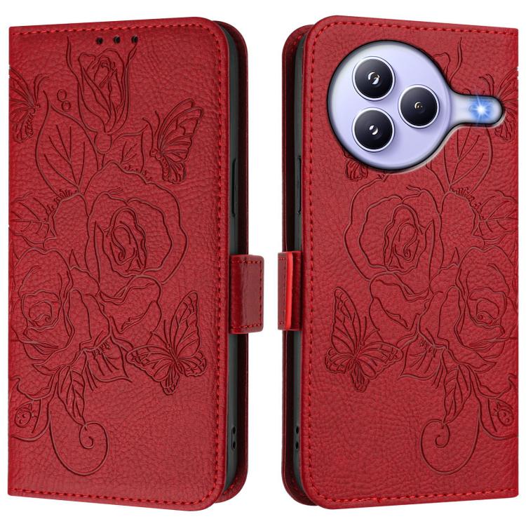 Funda de cuero antirrobo RFID con relieve rosa para Xiaomi Civi 5 Pro 5G (roja)