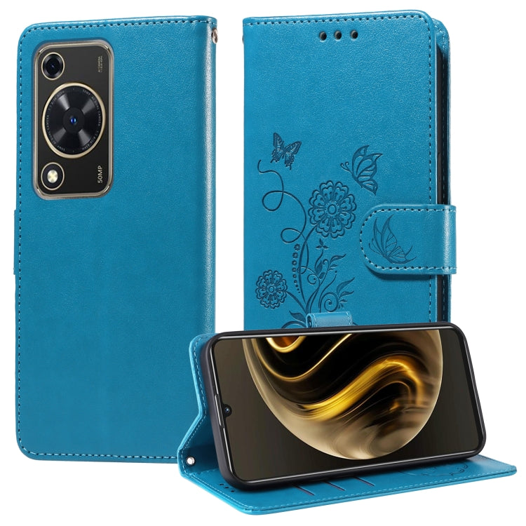 Funda de Cuero con 70 Flores de Mariposa en Relieve para Huawei Nova Y72 4G/Enjoy (Azul)